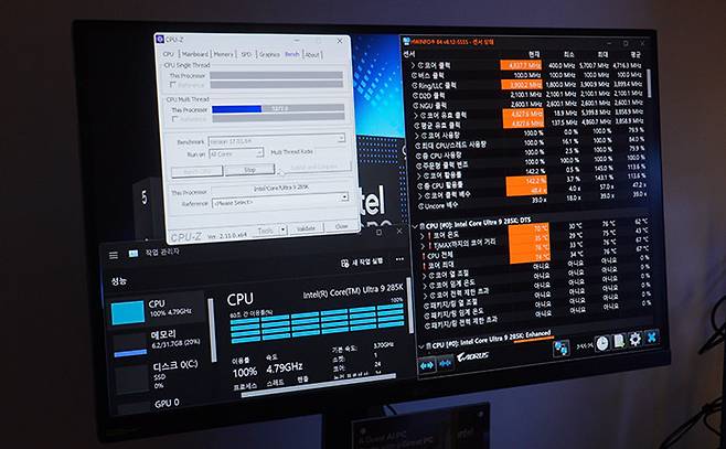 데스크톱 PC용 제품군, 인텔 코어 울트라 200S의 경우 기존 세대 대비 일상적인 사용 환경에서 랩터 레이크-R 대비 최대 58% 낮은 소비전력을, 게이밍 환경에서는 최대 165W 낮은 전력을 소비한다. 실제로 이발 브리핑에서는 게이밍 환경에서 코어 i9-14900K 대비 80W 적은 소비전력을 보였고 260이 넘어가는 FPS는 거의 동일했다.