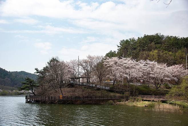 특징: 저수지 풍경을 가까이에서 감상하며 걷는 수변 산책 코스