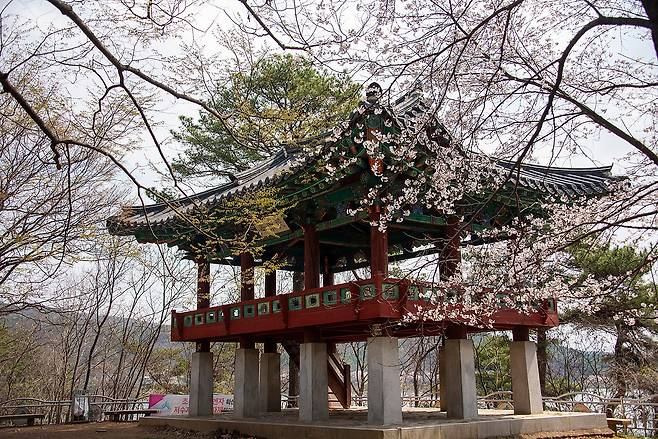 고복자연공원 산책길 중간에는 민락정 이라는 정자가 자리하고 있습니다. 이곳에서 바라보는 고복저수지 풍경은 특히 아름답기로 알려져 있습니다. 저수지와 주변 숲이 한눈에 들어오는 시원한 전망 덕분에 사진 촬영 장소로도 많은 사람들이 찾는 곳입니다. 특히 벚꽃이 피는 시기에는 저수지 주변 풍경이 더욱 화사해지면서 아는 사람들만 찾는 숨겨진 명소로 알려져 있습니다. 벚꽃과 호수 풍경이 어우러지는 이 시기는 고복자연공원을 가장 아름답게 만날 수 있는 시기이기도 합니다.