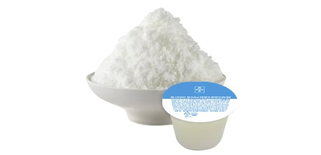 우유를 얼리는 과정이 번거롭다면, 우유 얼음을 구매하는 것도 괜찮다. 흥국F&B 스노우빙 눈꽃 밀크는 한 팩에 2인분이 먹을 정도의 300ml양이 든 우유 얼음으로, 먹을 때마다 하나씩 포장지를 벗기면 되는 간편 아이템이다.