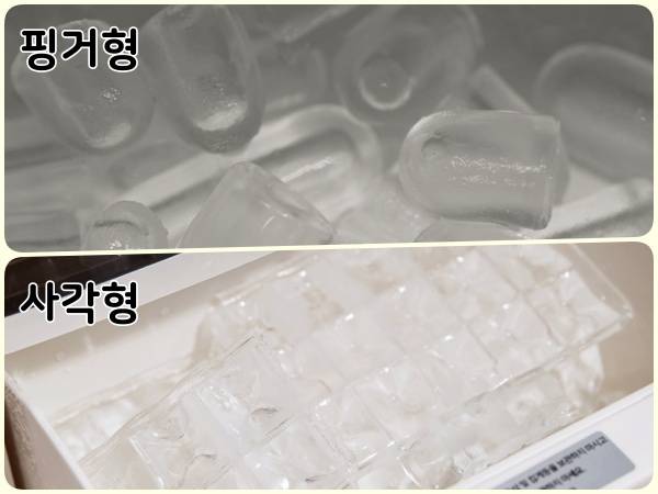 얼음 모양은 핑거형과 사각형으로 나뉜다. 우리가 잘 알고 있는 사각형 얼음은 가정용 냉장고에서 쉽게 볼 수 있는 형태로 핑거형에 비해 단단한 것이 특징이다. 녹는 속도가 늦어 하이볼과 같은 주류에 넣어 먹기 알맞다. 하지만 커피나 음료에는 핑거형 얼음이 제격이다. 가운데가 비어있는 형태라 음료를 더 빨리 시원하게 해주는 장점이 있지만 사각형 보다 녹는 속도가 빠른 단점도 있다.