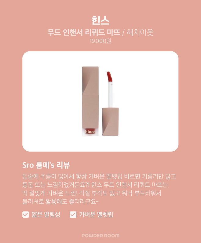잘 바르는 힌스 무드 인핸서 리퀴드 마뜨 해치아웃!