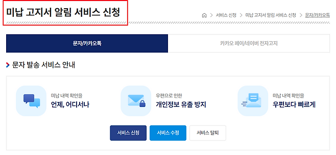 혹시 집에 고지서가 날라오지 않아 확인을 못할 경우를 대비하여 고속도로 홈페이지에서는 미납 고지서 알림 서비스를 신청할 수 있도록 마련해두었으니 신청을 하셔서 문자로 받으시는 것도 방법입니다.