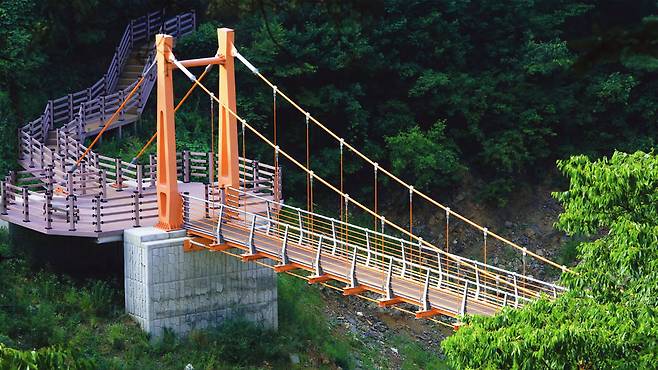 약 3시간가량 이어지는 숲과 호수의 길이 익숙해질 즈음, 종댕이길은 마지막 선물을 내놓습니다. 바로 호수 위를 가로지르는 출렁다리입니다.