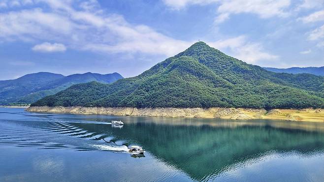 종댕이길의 진짜 매력은 울창한 숲 사이로 불쑥불쑥 나타나는 충주호의 풍경입니다.