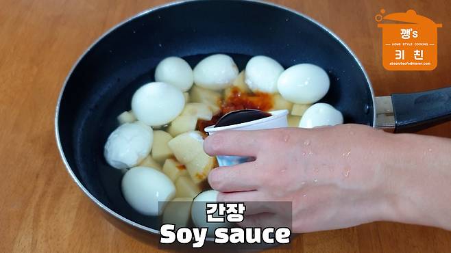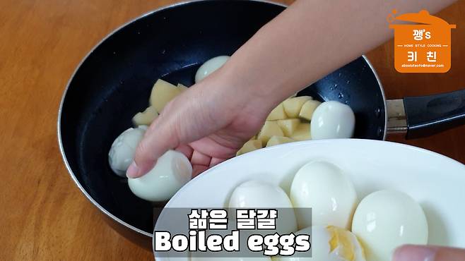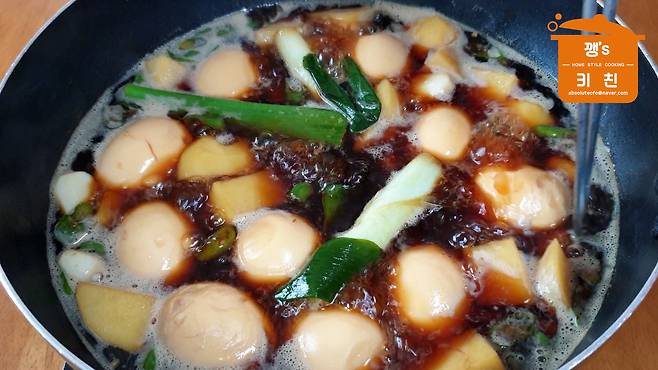 5. 멸치 육수에 감자, 삶은 계란 넣기