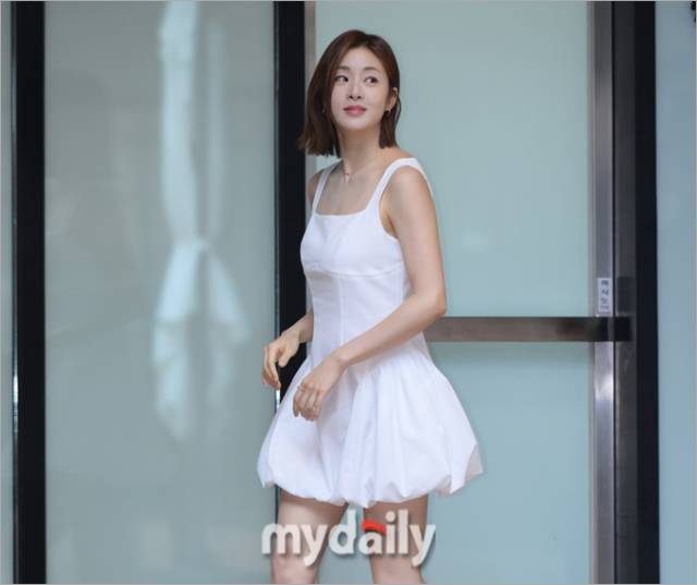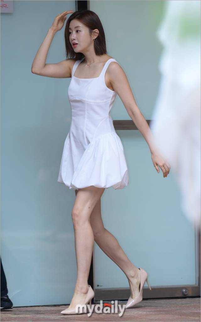 화이트 벌룬 미니 원피스를 입고 105cm의 다리 길이를 뽐내며 출산 후에도 예전과 같은 아름다운 모습 그대로를 선보였다.