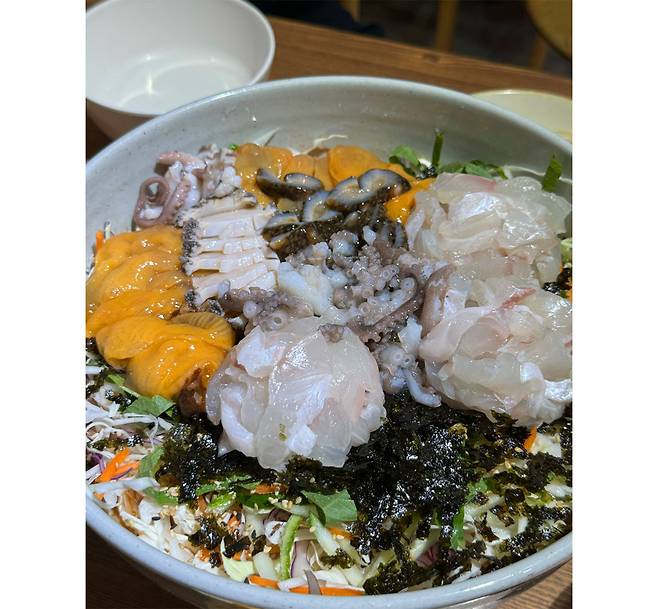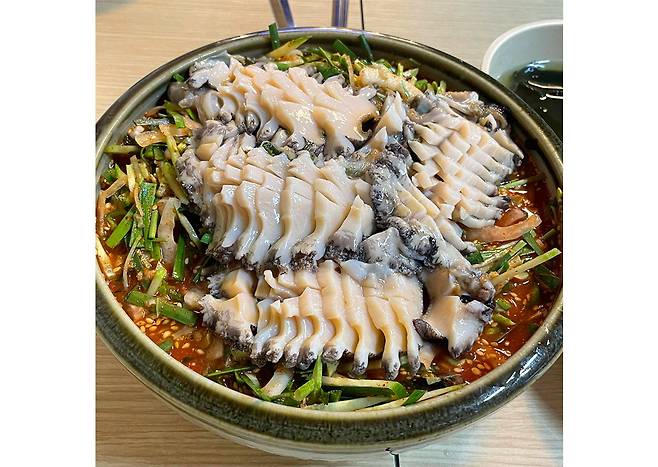 물회는 어부들이 배 위에서 잡은 작은 생선에 채소를 썰어 넣고 된장, 고추장을 풀고 물을 부어 후루룩 먹었던 음식이다. 은평구의 ‘횟집울릉도’의 모둠 물회는 이런 본질에 충실한 맛집으로 회, 막지, 멍게, 전복, 해삼 등 다양한 제철 해산물이 들어간다. 재료는 계절이나 해산물 채취 상황에 따라 달라진다. 단 하나 변하지 않는 건 신선도. 육수가 텁텁하지 않고 깔끔하며 양념 맛도 신맛, 단맛이 적당해 질리지 않고 끊임없이 들어간다. 모둠물회 2인분이면 김혜자 선생님도 놀랄 정도로 양이 많다. 한 사람당 소면 사리가 2개씩 제공되는 것도 매력적인 부분.