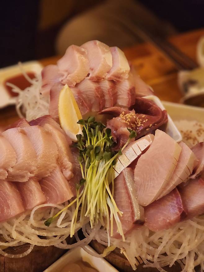 이 정도면 대장이 맞다. 20년 이상 포장마차를 운영한 사장님이 산지에서 직접 공수한 싱싱한 해산물로 음식을 만든다. 별미 메뉴인 황제 물회는 포장해 가는 사람도 많을 정도로 인기가 많다. 세꼬시, 대문어, 새우, 전복, 소라, 멍게 등이 잔뜩 들어가며 살아 움직이는 산낙지까지 들어 있다. 3천 원을 내면 냉면 사리를 추가할 수 있는데, 이게 또 별미다. 인원이 많다면 해산물 10종세트를 꼭 시키자. 양도 푸짐하고 그 자리에서 소주 한짝을 마실 수 있을 정도로 붉은대게장, 생선튀김, 산낙지, 문어초회, 멍게, 해삼, 사시미 등이 코스로 나온다.
