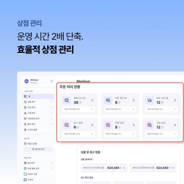 이상민: 네, 사실 쿠팡에 올리고 옥션 올리고 무신사 올리고, 이거 하나하나가 다 시간이거든요. 집계해서 매출과 재고 관리하는 건 엑셀 합치다 보면 꼭 오류가 생기는 일이고… 이런 것에서 벗어날 수 있다는 점에서 만족하는 분들이 정말 많으세요.