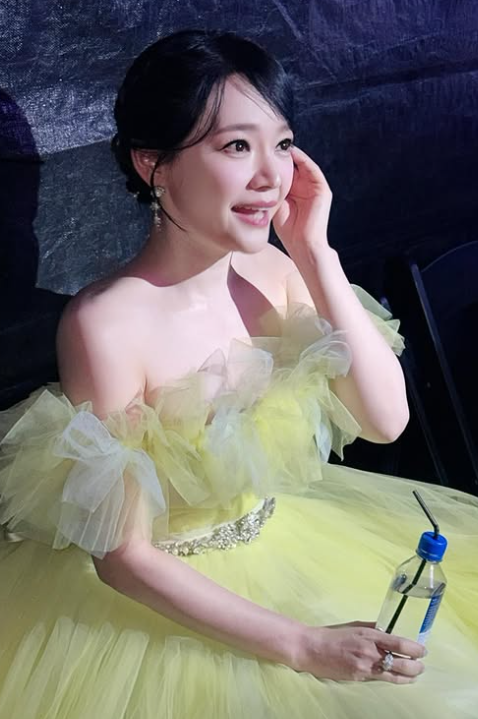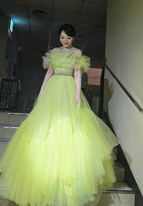 김소현 님은 화사한 노란색 오프숄더 드레스를 착용해 발랄하면서도 고급스러운 분위기를 자아냈어요.
