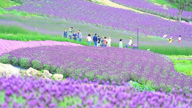 보라색 옷을 입은 수많은 방문객들이 라벤더밭 사이를 누비는 모습은 마치 판타지 영화 속 장면처럼 비현실적이다. 이곳에서 찍는 사진은 누구나 ‘인생샷’이 될 수밖에 없다.