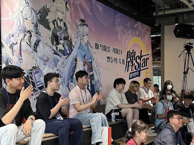 금일(28일), 스마일게이트가 서비스하는 미소녀 리치마작 '마작일번가'의 공식 한국 대회 'Riichicity K-mahjong Championship(RKMC, 이하 마작패왕전)' 결승전 2단계가 성남 판교에 위치한 스마일게이트 캠퍼스에서 개최되면서 수많은 '마작일번가' 유저들이 한 자리에 모인 건데요. 지금까지 온라인으로 진행한 것과 달리 이번 대회의 대미를 장식하는 경기인 만큼, 스마일게이트도 여러모로 힘을 준 모습입니다. 심지어 개발사인 Formirai의 대표가 한국 유저들의 열정을 느끼고자 찾아올 정도였죠.
