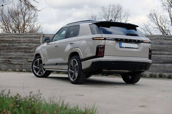 액티언 하이브리드의 외관은 세련된 루프 라인과 넓은 차폭이 조화를 이루어 도시적인 느낌과 당당한 존재감을 동시에 드러냅니다. 전면부의 주간주행등은 태극기 건곤감리 문양을 모티브로 하여 독특한 개성을 보여주며, 후드의 굵은 캐릭터 라인은 풍부한 볼륨감을 강조합니다. 측면은 플로팅 루프와 절제된 직선 라인이 역동적이면서도 고급스러운 느낌을 선사하며, 후면부의 ACTYON 레터링과 수평형 테일램프는 넓어 보이는 효과와 함께 브랜드의 정체성을 나타냅니다.