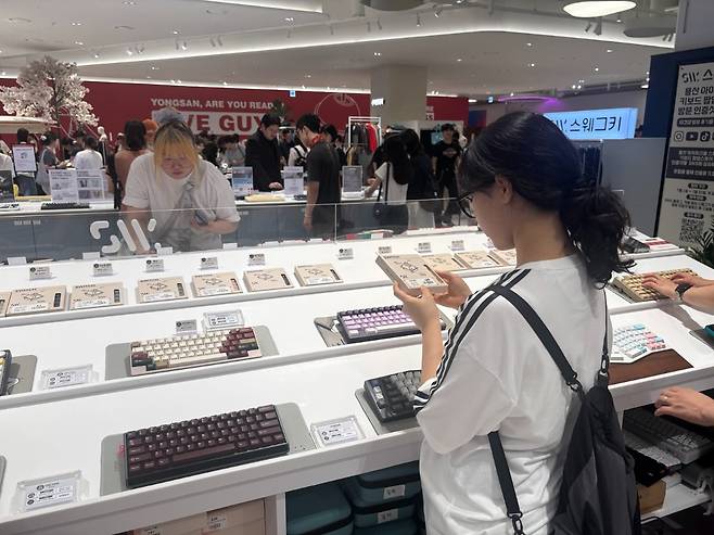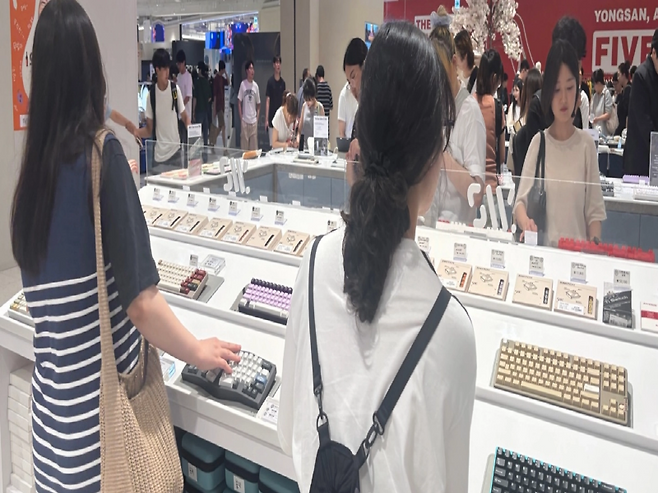 키보드 전문 브랜드뿐 아니라 대형 오프라인 쇼핑몰도 이런 흐름을 반영해 체험형 공간을 마련하고 있다. 용산 아이파크몰 내 ‘도파민 스테이션’ 팝업스토어에는 주말마다 키보드 체험을 하려는 방문객들로 붐빈다. 이곳에서는 80만원이 넘는 하이엔드 기계식 키보드도 불티나게 팔리고 있다. 고객 중 상당수가 평일 낮에는 오피스에서 일하는 직장인들이라는 것이 매장 측 설명이다.
