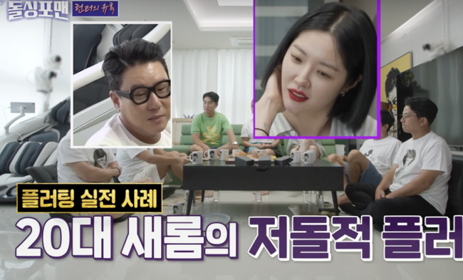 또 플러팅 기술자라고 소개, 김새롬에겐 미혼과 돌싱일 때 플러팅 차이가 있는지 물었다. 김새롬은 “결혼 전후 차이보다, 20대와 30대 플러팅이 다르다”며 대답, “20대는 다이아몬드 플러팅, 매력을 발광하고 싶은 느낌”이라 설명했다. 그만큼 매력을 어필했다는 것. 이어 30대 플러팅에 대해선 “응축된 진주 플러팅, 은은하게 매력을 발산하는 것”이라며 “오히려 더 뚫어져라 쳐다보게 된다”고 말해 모두 공감하게 했다.