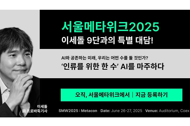 인공지능(AI) 역사에 한 획을 그은 전설적인 바둑기사 이세돌 9단이 ‘서울메타위크2025’의 연사로 전격 합류한다.
