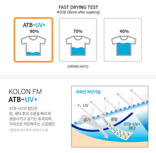세탁 후 30분 이내에 90% 가량 건조가 가능한 속건성 비교 테스트로 인정받은