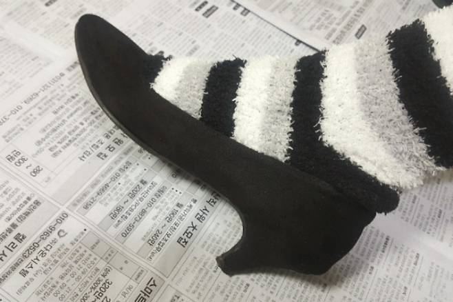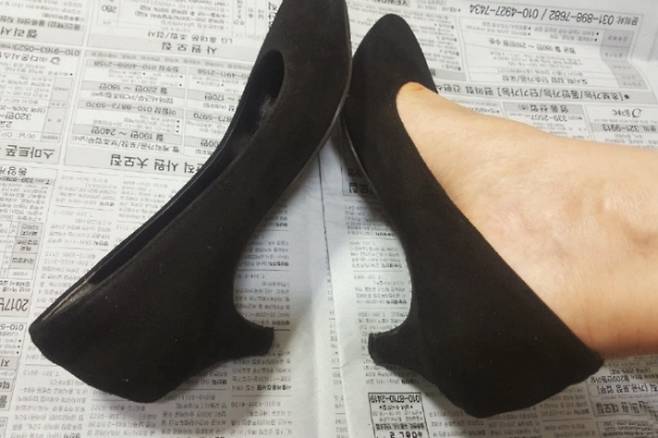 방법도 간단해요. 일단 수면양말을 신고 구두를 끼워 신고요.