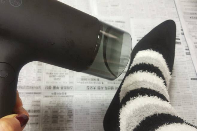 구두에 따뜻한 바람을 골고루 쐬어 주시면 된답니다. 발이 불편한 쪽에 바람을 좀 더 쐬어주셔요.