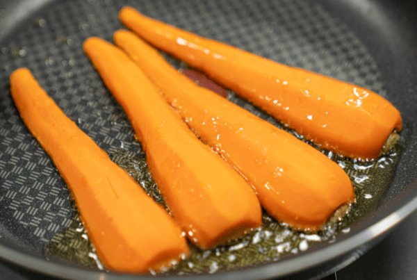 겉면이 갈색빛으로 바삭하게 변하면서 당근의 단맛이 더욱 농축된다. 이때 팬에 자주 뒤집기보다는 한 면씩 충분히 구운 후 반대쪽으로 넘기는 방식이 좋다. 버터가 당근 표면을 코팅하면서 고소한 풍미를 극대화시킨다.