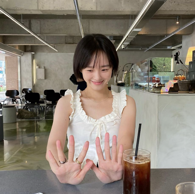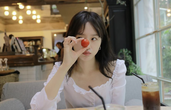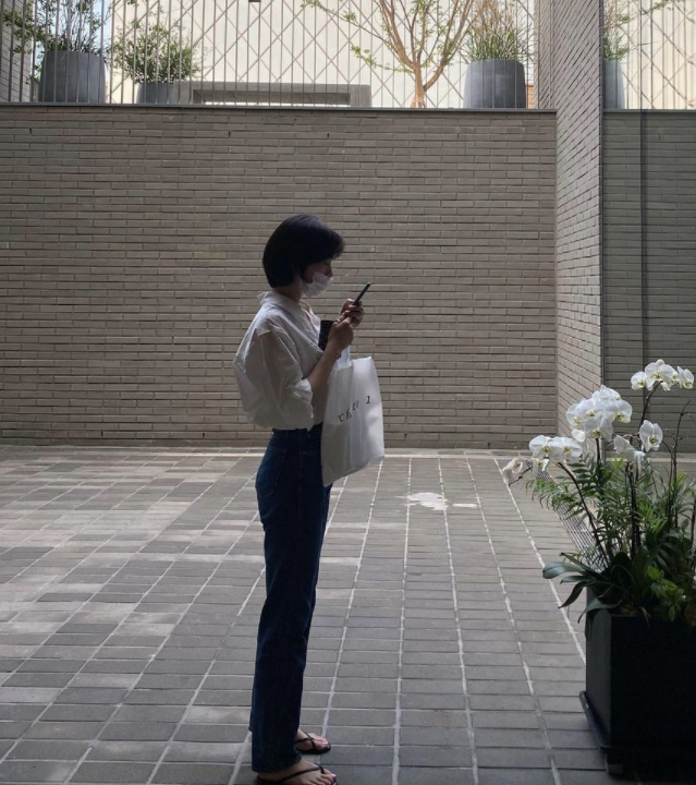 박규영은 데일리룩으로 흰색 상의를 잘 활용하고 있는데요. 박규영은 네크라인에 프릴 장식이 달린 블라우스를 착용해 사랑스러운 룩을 완성했습니다.