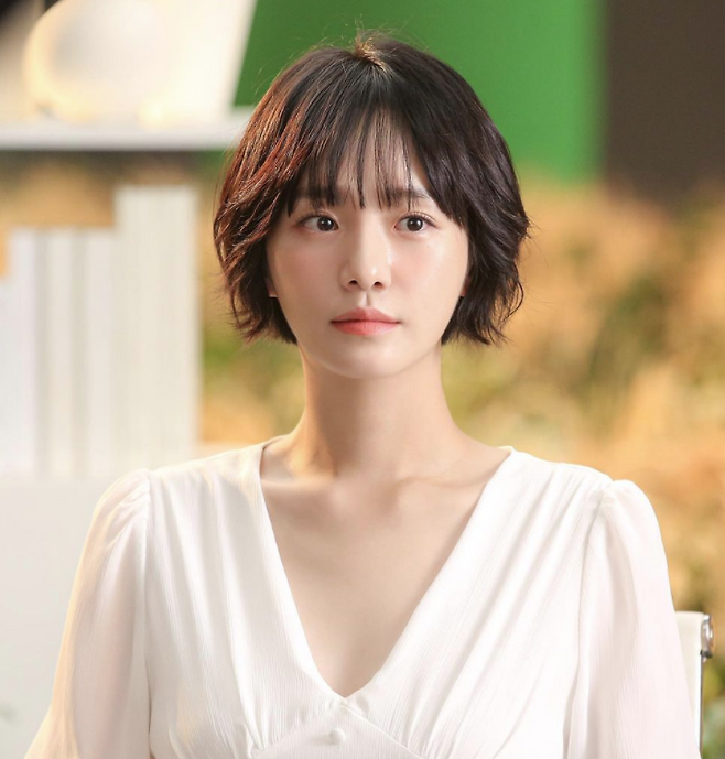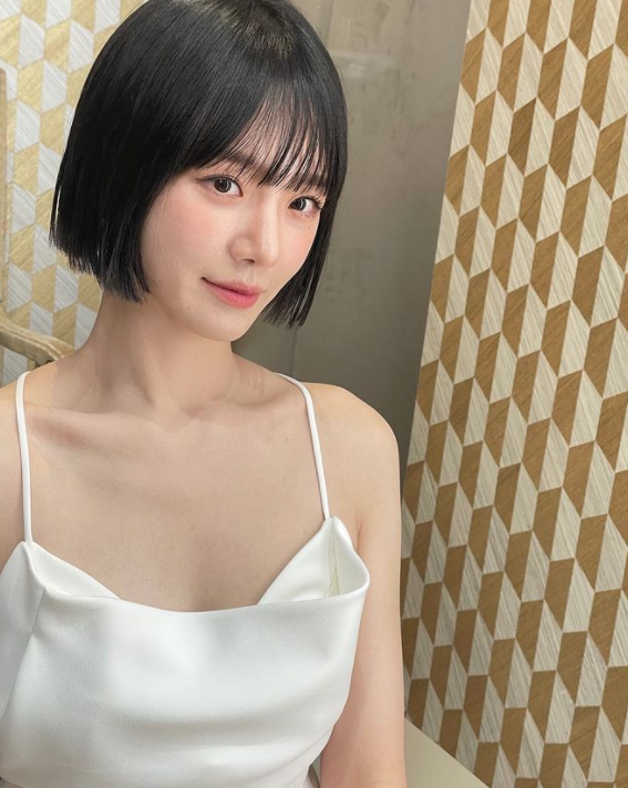 박규영은 단발 헤어스타일을 하고 흰색 드레스를 착용했는데요.