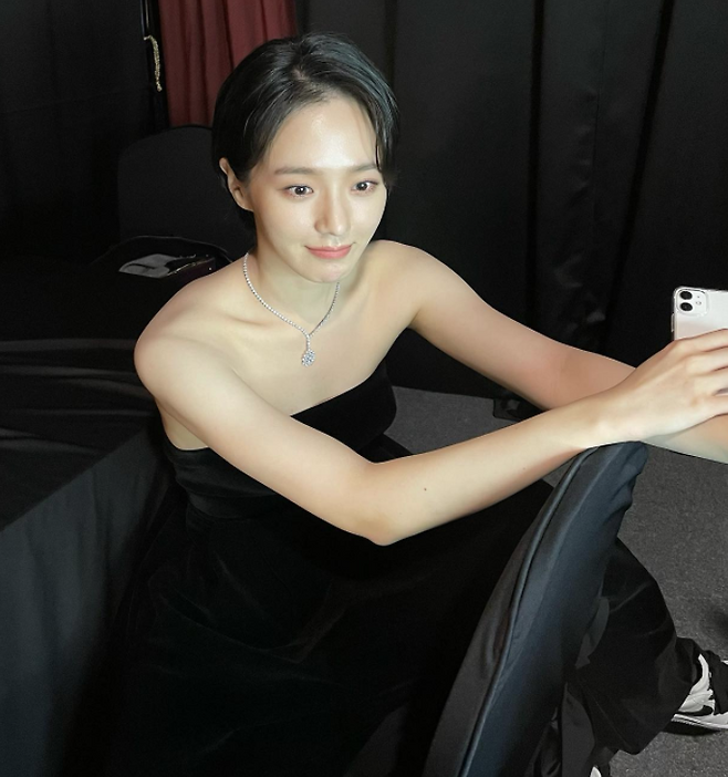 박규영은 캐주얼룩 뿐만 아니라 드레시한 룩도 완벽하게 소화해냈습니다. 박규영은 블랙 오프숄더 드레스에 목걸이를 포인트로 줘 고급스러우면서 세련된 룩으로 시선을 사로잡고 있습니다.