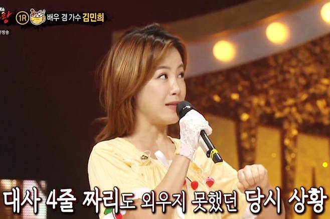 지난 25일 ‘복면가왕’에 출연한 김민희는 “제가 공황 장애가 굉장히 심하게 왔었다. 40대 중반에 4줄짜리 대사도 외우지 못했다”라고 입을 열었다.