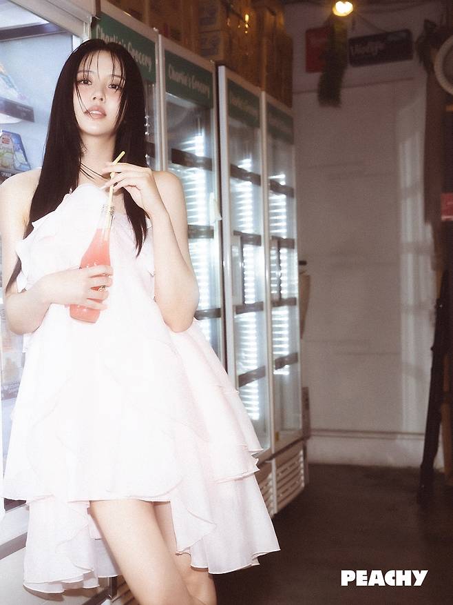 입술은 물 먹은 듯한 피치빛 글로즈로 가볍게 연출되었죠.