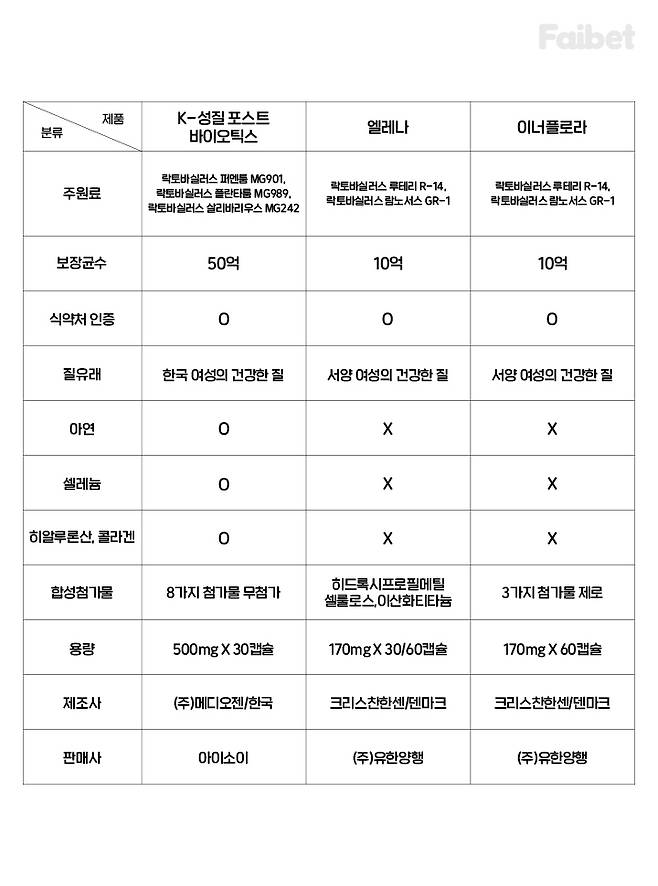 오늘 소개한 세가지 여성유산균 비교 표를 마지막으로