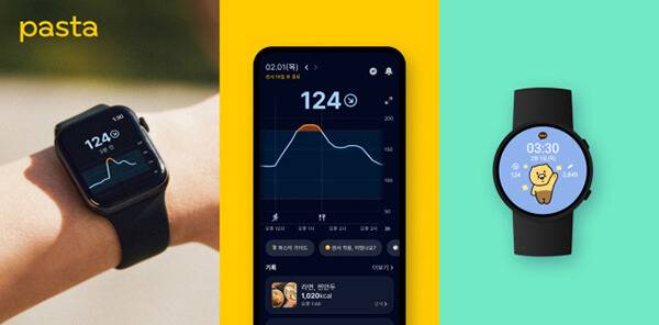 카카오의 디지털 헬스케어 자회사 카카오헬스케어는 인공지능 기반 모바일 혈당 관리 서비스 ‘파스타’를 운영하고 있다. 스마트폰뿐 아니라 웨어러블 기기에서도 파스타 앱을 통해 혈당 정보와 추세 그래프를 확인할 수 있다. 측정은 별도 판매하는 연속혈당측정기를 이용하고, 혈당 정보 등을 웨어러블 기기로 확인하는 방식이다. 파스타는 CGM 센서를 통해 혈당 정보를 수집한 뒤 인공지능 기반으로 혈당에 영향을 미치는 주요 변수를 분석하고, 이용자 각자의 적합한 생활 습관을 안내한다.