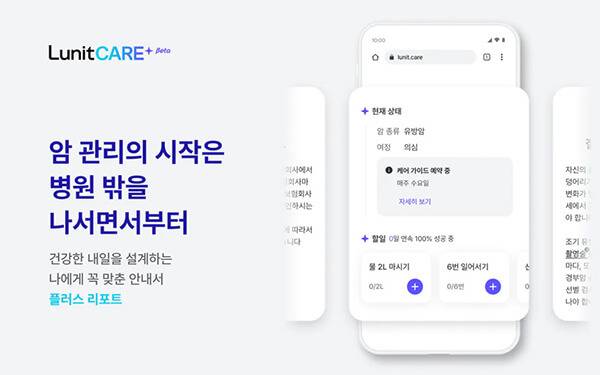 ‘루닛케어플러스’는 병원 밖에서도 암 전문 의료진에게 관리를 받을 수 있는 서비스다. 임상 경험이 풍부한 의사, 간호사로 구성된 의료팀이 공신력 있는 자료를 가공해, 이용자들이 알기 쉽게 정보를 전달하고 솔루션을 제공한다. 현재 본 서비스는 폐암, 갑상선암, 위암, 대장암, 유방암의 5대 암 환자를 우선 대상으로, 무료로 서비스를 제공하고 있다. 상담이 필요한 환자가 루닛케어플러스를 통해 신청하면 이용할 수 있다.