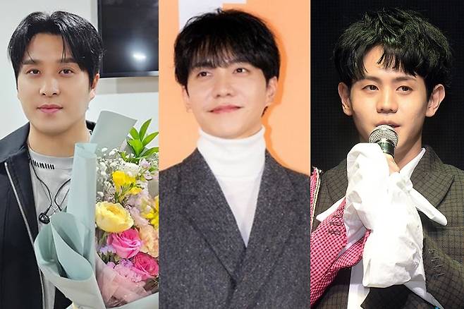 먼데이키즈의 이진성, 가수 이승기, 그리고 하이라이트의 양요섭.