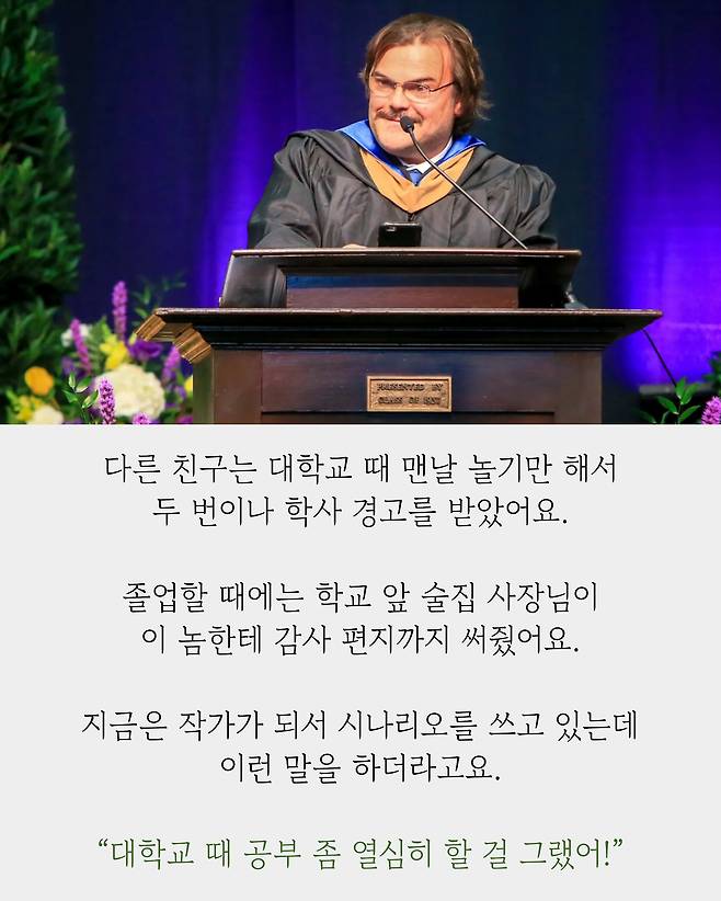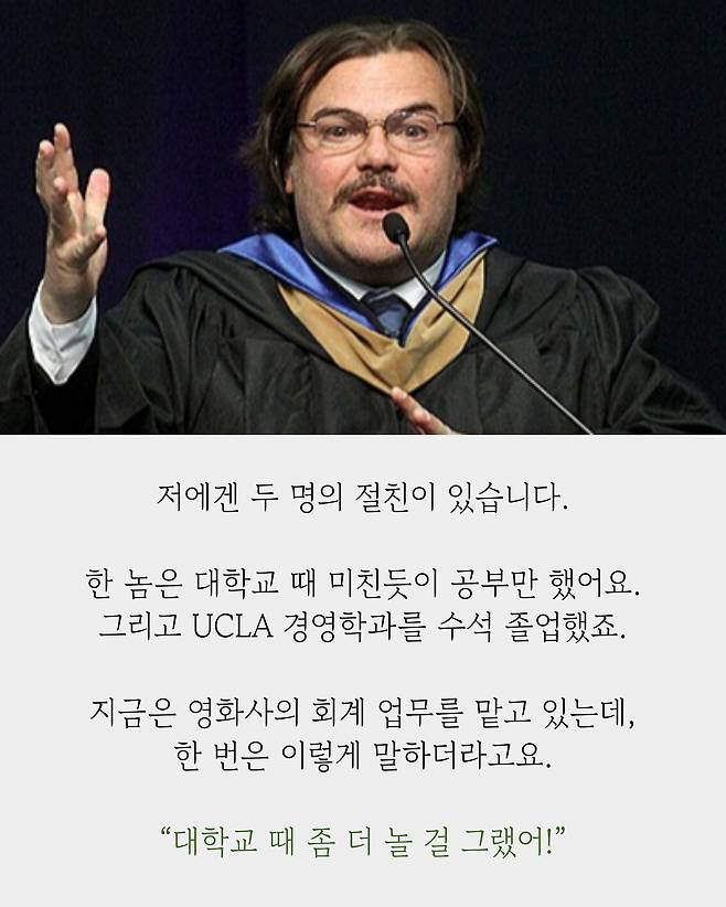 전 세계가 감동한 잭 블랙의 졸업 연설 "어제는 끝났고 내일은 멀었고 오늘은 아직 모른다"