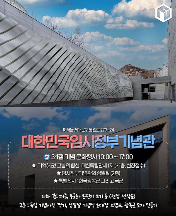웅장하고 성대한 공연을 비롯해 부지 내에서 다양한 체험 프로그램이 운영될 예정이며, 상설 및 특별 전시도 관람이 가능해 삼일절 가볼만한 곳을 고민중인 분들에게 가장 추천하고싶은 곳입니다.