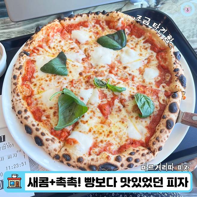 마지막으로 방문했을 때에는 빵 대신 피자를 먹어봤어요. 마르게리따 피자를 주문했고 가격은 17,000원! 크기가 커서 두 명이 나눠먹기에 적당했고, 피자가 의외로 커피랑도 잘 어울린다는 사실을 발견하게 되었어요ㅋ.ㅋ