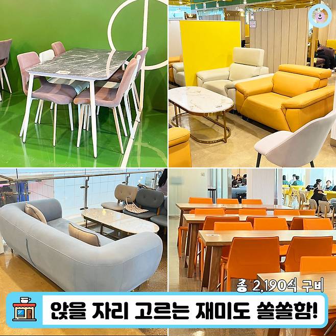 내부 좌석은 사진으로 담기 힘들 정도로 다양한 컨셉으로 이루어져 있었어요. 공간이 워낙 크다보니 자리와 자리 사이 간격도 다른 곳에 비해 여유가 있고, 테이블 모양이나 컬러, 의자의 소재나 디자인까지 구경만 해도 반나절이 지나갈 정도로 다양해서 갈 때마다 어디에 앉을지 고르는 재미가 쏠쏠하더라구요.