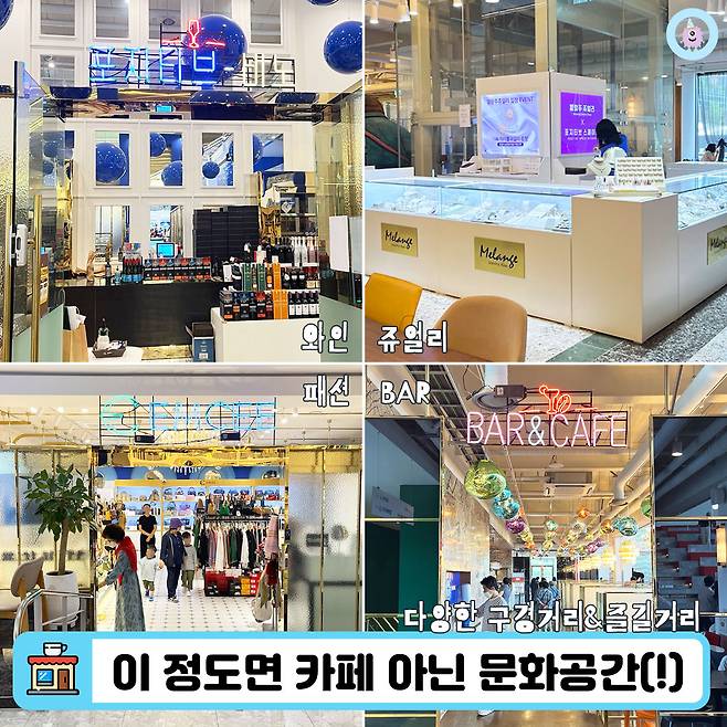 1층에서 3층으로 올라가는 에스컬레이터 안쪽에 자리한 와인샵부터, 1층 로비에 자리한 쥬얼리샵, 1층 베이커리 진열대 옆에 위치한 옷&잡화 가게, 4층에 위치한 바까지 즐길거리가 한가득이었답니다.