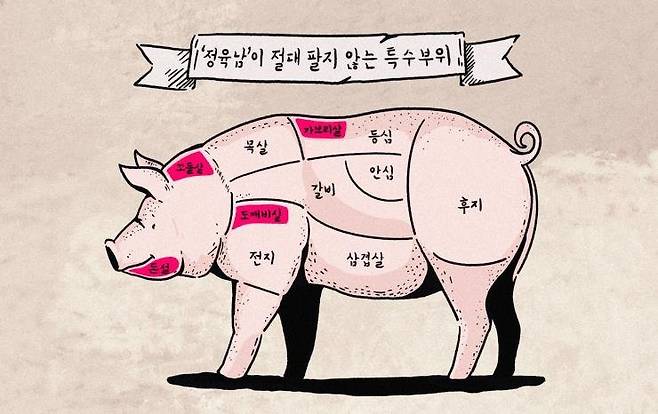 제주 한우 오마카세 우마담 풍하의 허광범 셰프와 함께하는 고기 백과사전. 셰프 허광범은 돼지는 물론, 소, 닭, 오리 등 다양한 육고기를 직접 발골할 수 있다. 앞으로 매주 1회씩 정육남 허광범 셰프와 함께 다양한 고기 이야기를 소개한다. 정육남 첫 번째 이야기는 돼지 특수부위. 돼지 한 마리를 발골하면서 직접 맛본 많은 부위 중, 팔고 싶지 않을 정도로 맛있는 특수부위를 알아보자.