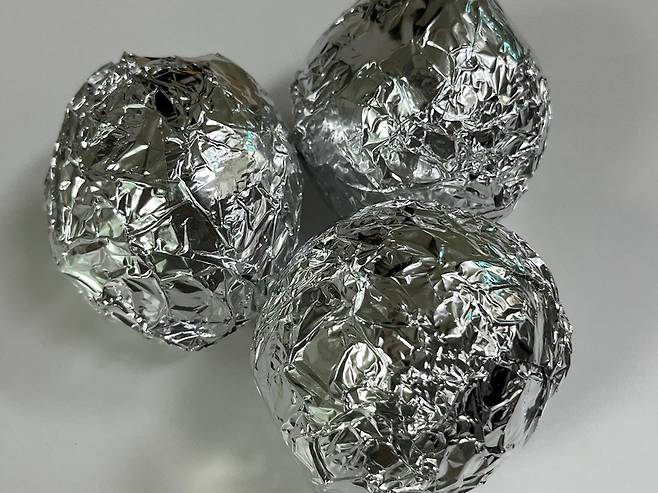 양파는 껍질을 깨끗하게 벗긴 후 포일로 꽁꽁 감싸줍니다.