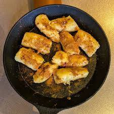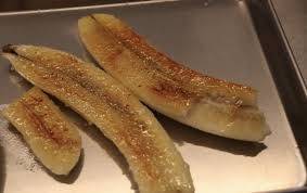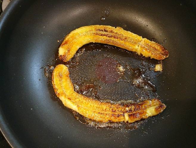 팬에서는 버터를 살짝 녹인 뒤 바나나를 반으로 잘라 중약불에서 천천히 굽는다. 한쪽 면이 충분히 익으면 뒤집어 마저 구워주면 된다.