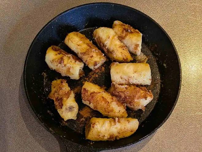 에어프라이어를 사용할 경우 180도로 예열한 뒤 바나나를 반으로 잘라 넣으면 된다. 5분에서 10분 정도 조리하면 겉은 살짝 구워지고 속은 부드럽게 익는다.
