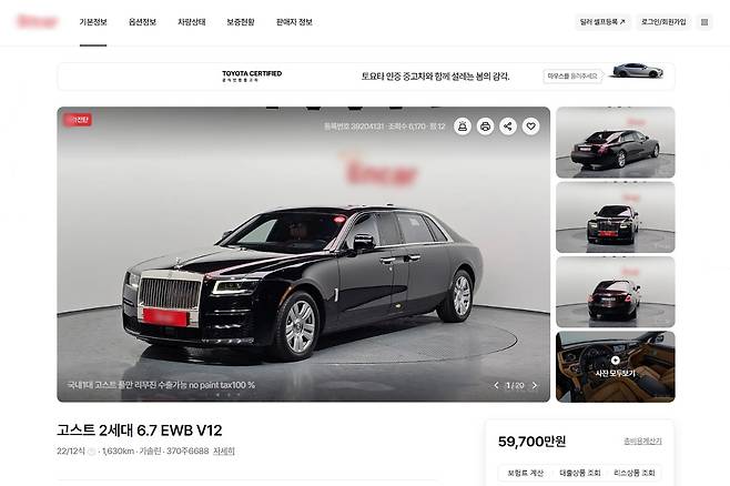 최근 중고차 매매 플랫폼에 믿기 힘든 차량 한 대가 올라왔다. 바로 롤스로이스의 초호화 모델, ‘고스트 리무진’이다. 정식 명칭은 ‘고스트 익스텐디드 시리즈 II’로, 국내에서 단 한 대뿐인 이 차량은 등록 가만 무려 5억 9,700만 원에 달한다. 보통 고스트 스탠다드 모델이 4억 원 안팎인 점을 감안하면, 이 매물의 특별함은 숫자만으로도 설명이 가능하다.