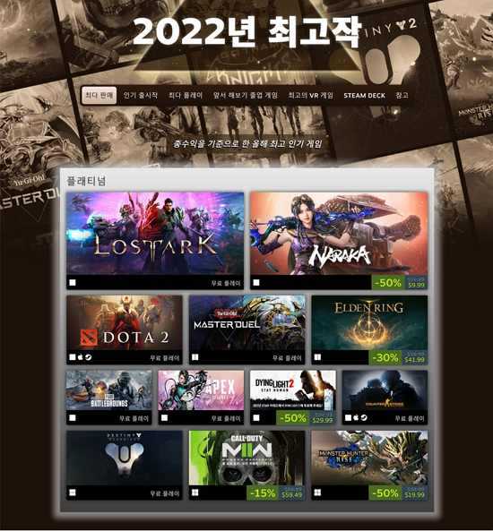 로스트아크가 'Steam Best of 2022' 3개 부문에 올랐다.