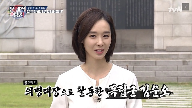 또한 한수연의 외증조부는 공주에서 의병대장으로 활동했던 김순오 씨라고 하는데요. 독립운동가의 후손으로서 자긍심을 갖고 있다는 그는 나라를 위해 희생한 분들을 기리는 여러 국가 행사와 방송에 출연해 의미를 더하고 있습니다.