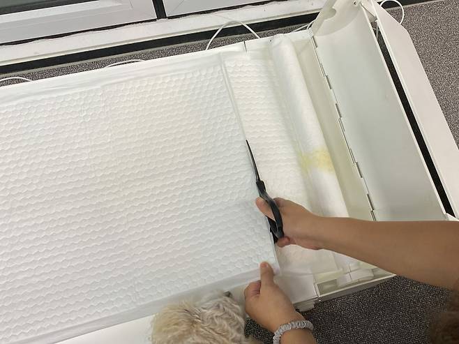 이런 경우 배변 패드 두께를 얇은 것 사용하기, 여러 개 깔아 주기 그리고 배변 패드를 자주 치워주며 관리해야 합니다.