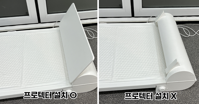 루피는 수컷이라 그런지 가끔 다리를 들고 마킹하듯 소변을 봅니다. 이런 습관을 가진 경우, 벽 부분에 배변 패드를 붙이거나 매너벨트를 사용하기도 하는데요. 왈츠 펫토일렛은 이런 사고를 방지하기 위한 프로텍터도 설치할 수 있습니다.