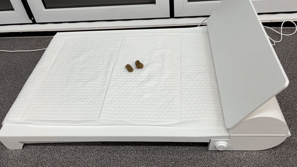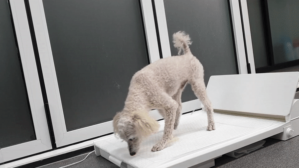 다만, 아쉽게도 루피는 초소형견으로 몸무게가 2.3kg으로 매우 가볍고, 배변 시간이 7초가 안 되어서 인지 기계가 루피가 화장실을 사용한 걸 인식하지 못해 수동으로 치워줘야 했어요.(권장사용 강아지 체중 2.5kg 이상)