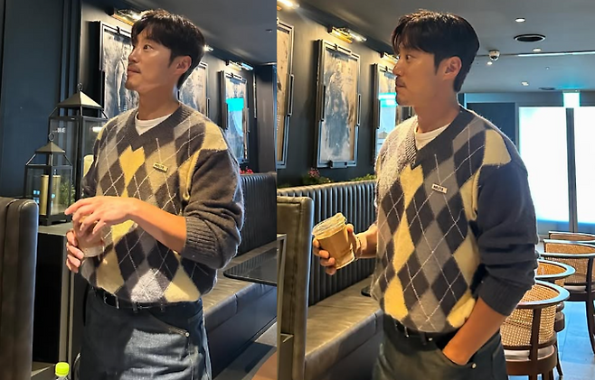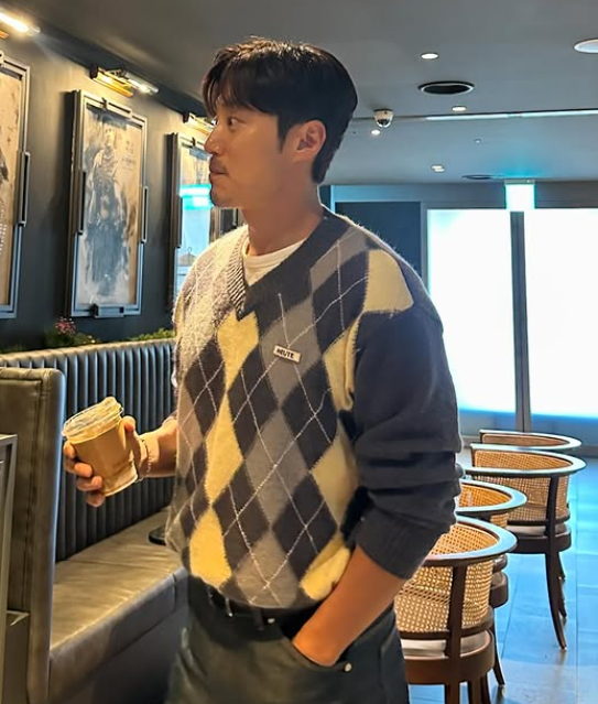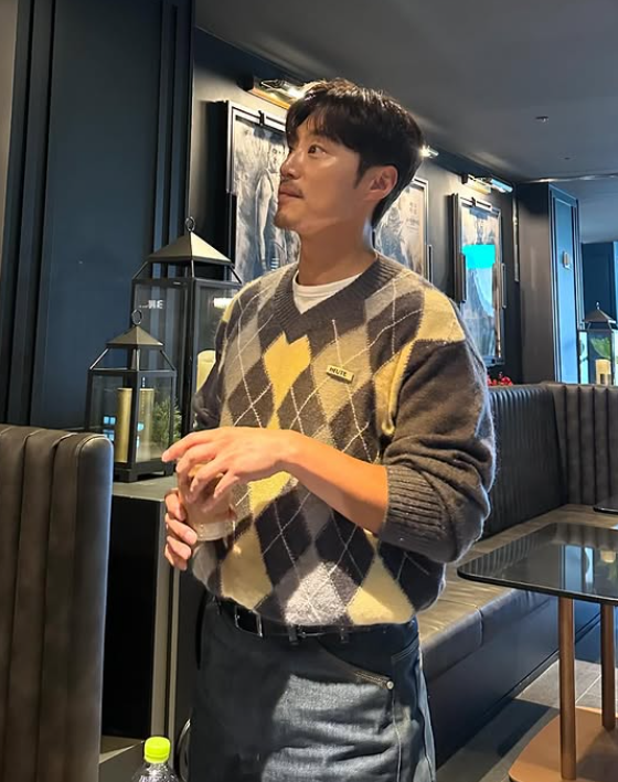 이희준은 그레이와 레몬 색상으로 이루어진 체크 니트를 착용하고, 하의는 데님 팬츠를 매치해 댄디한 패션을 완성했습니다. 허리에는 검정색 벨트를 착용해 세련된 느낌을 더했고, 전체적으로 깔끔하면서도 스타일리시한 룩을 보여줬습니다.